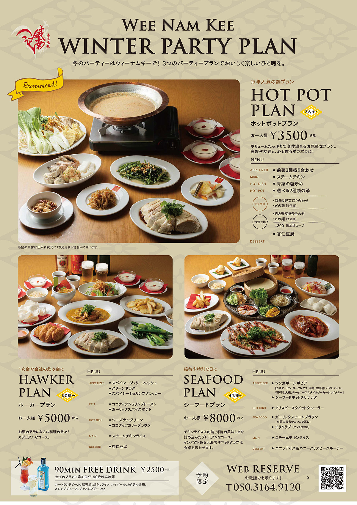 人気の鍋やシンガポールのローカル料理を味わえる、3つの冬限定パーティープランをご用意しました。