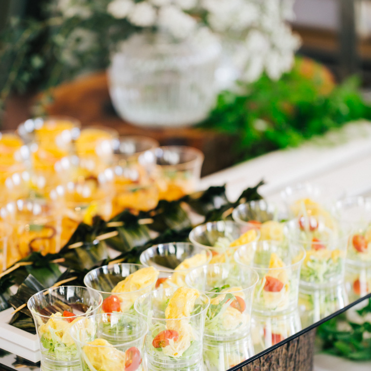 少人数での食事会から、貸切パーティー、ウェディングまで幅広く対応いたします。緑に囲まれた開放的な空間で、思い出に残るひとときを。