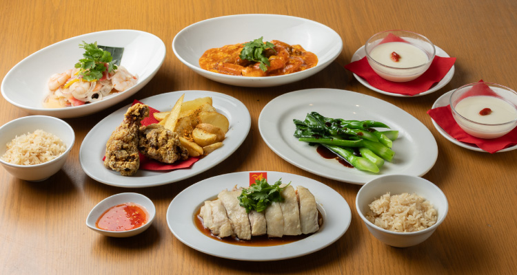 伝統的な海南チキンライスをはじめとした、シンガポールの多彩なメニューを揃えました。エキゾチックな香りと緑あふれる開放的な空間で、本場のローカルフードを囲みながら、シンガポールへショートトリップしたような気分を、ぜひ味わってみてください。