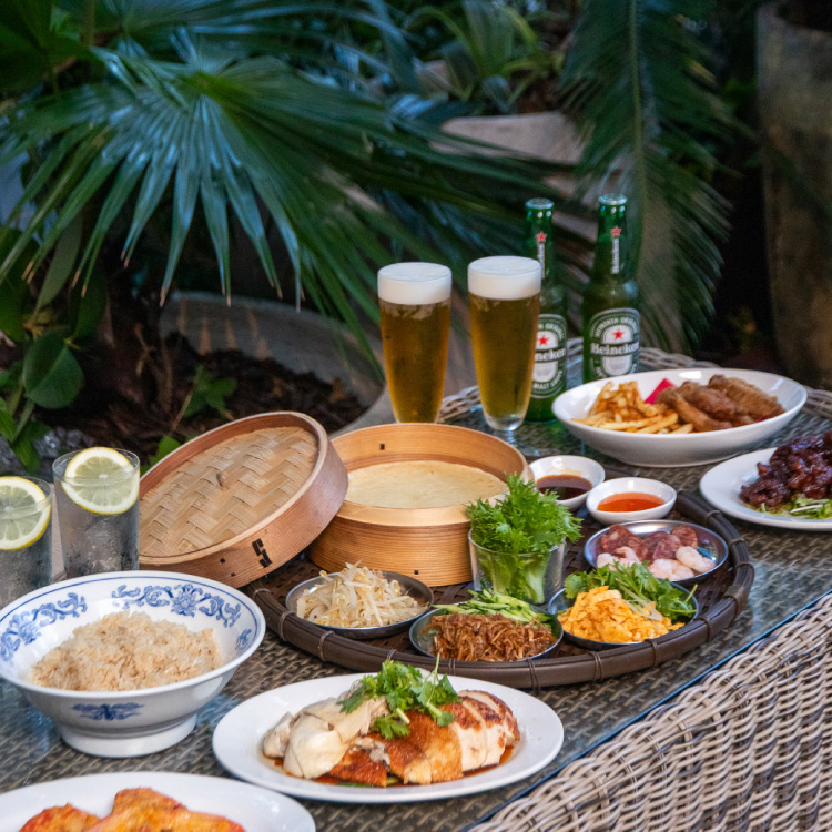 シンガポールの国民的料理「海南鶏飯(ハイナンチーファン)」は、 中国・海南州から移り住んだ人々によって伝えられた伝統の味。いまではチリクラブと並ぶ、シンガポールを代表する名物料理です。やさしく茹でた鶏肉と、その旨味をたっぷり吸った香り高いチキンライス。素材を引き立てる3種の特製ソースとともに味わいます。「シンガポールチキンライス」と呼ぶには、ご飯・鶏肉・ソース、それぞれの味がしっかりと際立っていることが大切。それこそが本場の一皿です。当店では本国でも人気の“スチーム”と“ロースト”の2種類をご用意。高タンパクでヘルシー、、そして何よりシンプルに“おいしい”——それが、シンガポールチキンライスの魅力です。