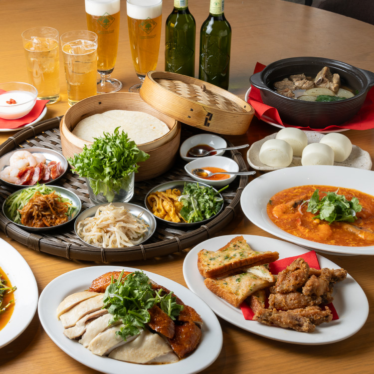 緑に囲まれた開放的な空間で、 シンガポールの本場料理を囲むパーティーを! 名物の海南チキンライスはもちろん、鍋料理や海鮮料理など、 シンガポール本場の味を囲みながら楽しめるプランをご用意しました。会社の忘年会や新年会、友人とのカジュアルな集まりから、お祝いや会食などの改まったお席まで、さまざまなシーンにご利用いただけます。